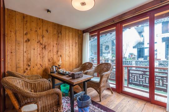 地处朱家角景区内景色最美段,房间宽敞,自带一个可坐6人的茶室,茶香景美,从窗口看夜景,特别美。老板娘很热情,服务周到。床品不错,大床很宽,只是床垫有些硬,不太习惯。看完夜景回来,老板娘还热情地请我们吃汤圆。