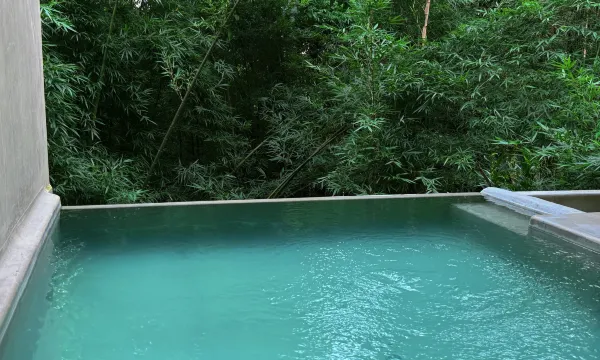 房间自带泡池在阳台,周边全是竹林,保护隐私的同时意境太美了,下午四点到上午十一点的泡汤时间可以尽情享受,我不得不再发自肺腑地感慨一句:好想冬天的每分每秒都可以待在这里!