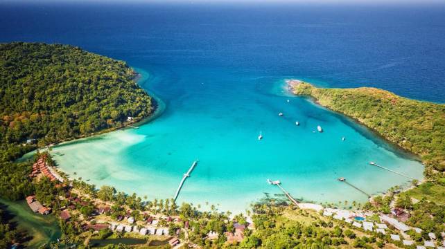 不建议住在这里。尤其是前排这个房。与图片基本无关。达不到想要的效果。如果你坐大船上岛,那还要双条车在岛里晃多半小时,快艇可以直达酒店码头。其实这个岛最大的优势就是没什么人,没什么人的原因就是其实一般。跟皮皮岛差得远。