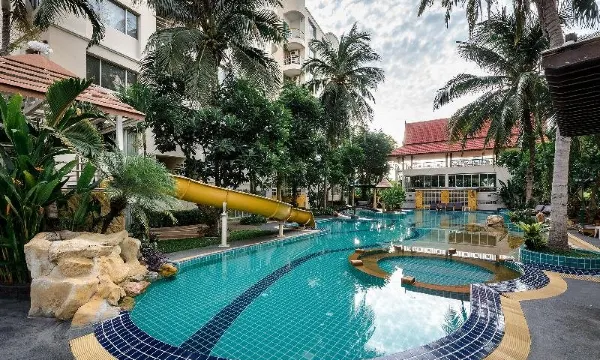 酒店位于华欣海滩前的主干道附近,大约5公里。员工服务很好,水上乐园也很好玩。