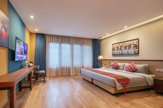 房间很大 超乎预想 离景区很近 很方便 包了门票和早餐 早餐很丰富 早上六点半就有得吃 景区的设计很漂亮 梅花很好看 又香