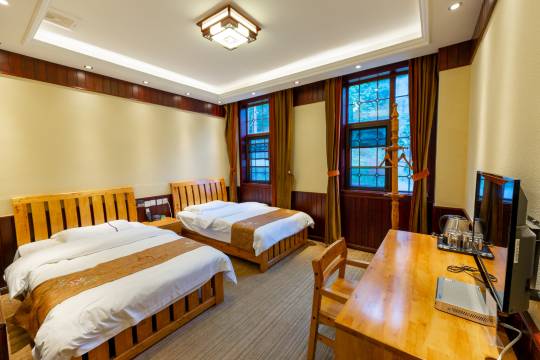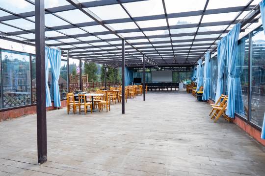 酒店是这周围最好的一家酒店.看了一下评价都还很不错才订的这家酒店、本来是订的帐篷房但是我女朋友觉得有点冷老板还特意免费给我们升级了酒店室内的房间在外出游很少能看到那么热情好客大方的老板.现在是吃折耳根最好时候第二天一早起来老板就组织我们和酒店其他客人去山上挖了野菜折耳根.体验感很不错.酒店餐厅的吃食味道也很不错.装修也具有民族特色场地也很大,老板说夏天避暑可以来游玩有特色烤全羊.还有篝火晚会等等…..
