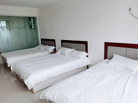 很满意房间三张大床,但临近街道下半夜会过很多车太闹了,特别多的拖拉机之类的,早上出门还被洒水车喷了一身泥,空调很给力,厕所内热水器容量略小,五个人轮流用热水要等很长时间,店家很热情,卫生环境也不错,给了我们很多新衣服撑子