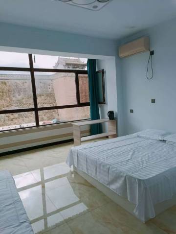非常方便的位置,就在西古堡门口,站在房间能看到古镇的大部分😁老板和老板娘非常热情,一直引路,因为春节人和车都太多了,所以进入很难😅车子可以停在停车场里,走过来不远。晚上看古镇城楼非常漂亮🤗房间有些旧,但是该有的设施都有👍楼下就是老板自己家的剪纸店,非常优惠的价格🌸