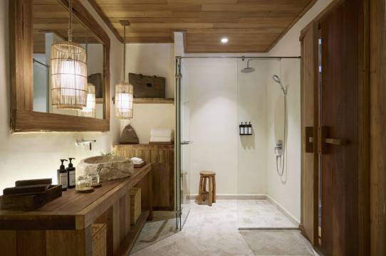 周边环境也不吵不闹。同是villa房间,象岛的私人泳池更大,是真的能游泳了。整体面积也更感觉也比普吉的别墅大,还是很出片的,房间里备品,水,毛巾补充的数量非常充足。说说房间的缺点,我感觉酒店有点过分的追求特色了,导致房间的大门,窗户,小门都是用旧木头拼接的。效果确实到位但是就会有一些问题,比如这种木头之间都会有巨大的缝隙,透光,蚊虫都会有问题。其实像功能性的门床完全可以用现代风格的,就像去泳池那个一样,就完美了。另外酒店还在陆续的翻新,我第一晚住的房型连续换了两个房间,第一个是卫生间楼顶漏水,第二个是一股霉味,这个对于已经翻新后的房间实数不应该。其他方面都不错吧。如果丁索再把细节做的更好一些的话应该可以算是象岛天花板成为网红酒店的。
