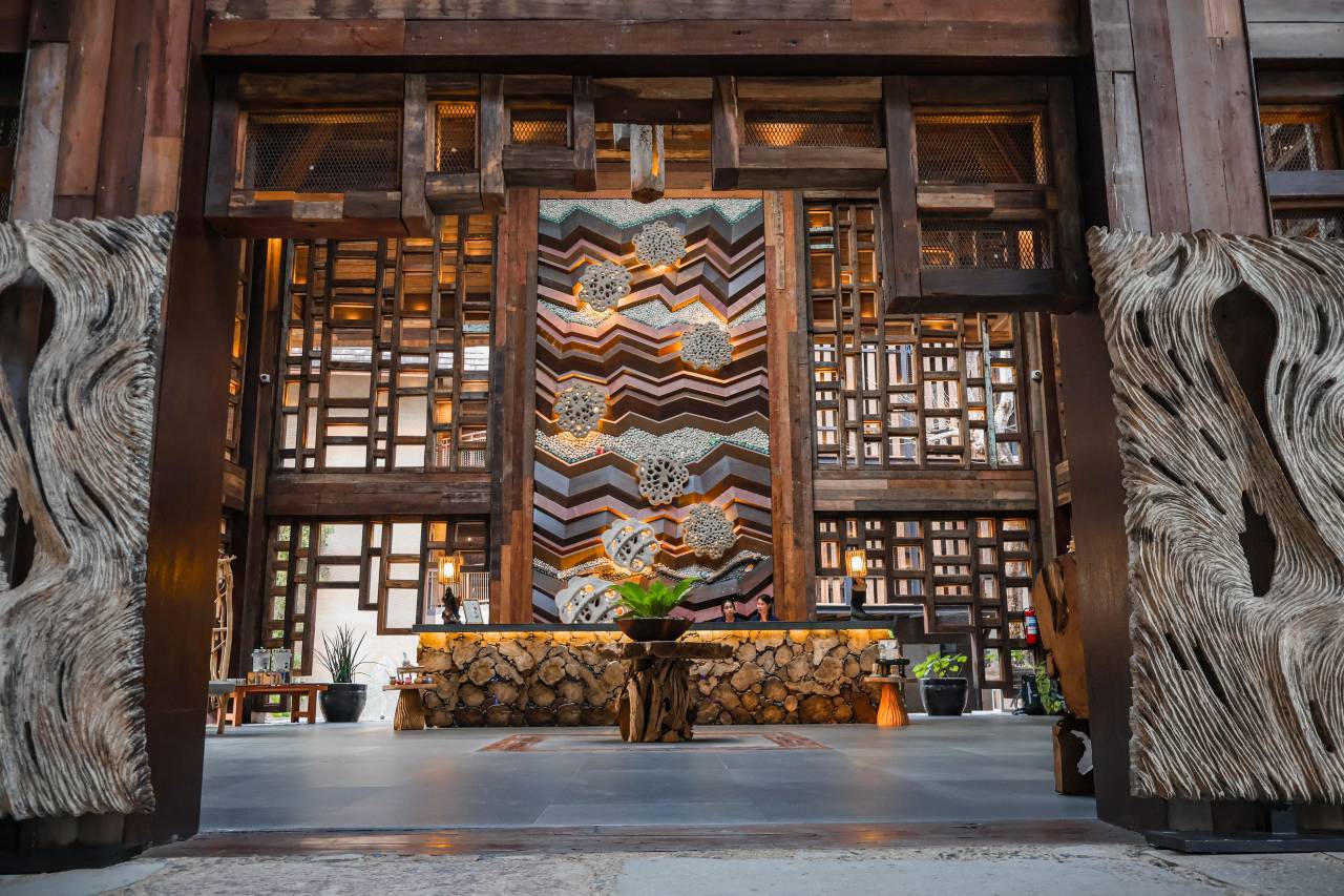 进去酒店感觉还不错,非常安静,大堂很高大,也发现酒店有些陈旧,不像是2024年装修,后来才明白酒店的理念就是环保回收,所以装修风格也比较显旧。
