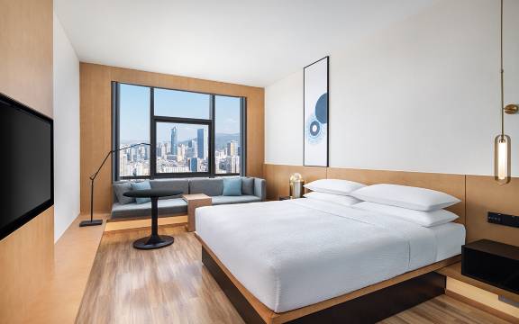 地铁口,商场楼上,非常方便也具有性价比。早餐很丰富,孩子们说比昆明洲际的还好吃😋景观一流,可以看到很远。房间干净整洁。配套完善。