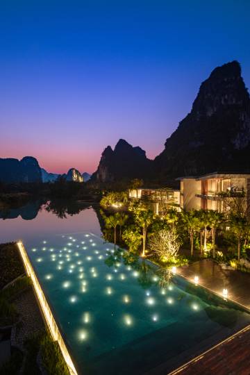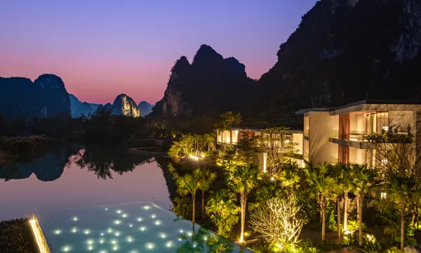 广西崇左秘境丽世度假村位于中国与越南边境河畔的悠然之所在,自然胜景与异域摩登并存的豪华度假胜地。坐落于中国及越南的边境,依偎于明仕河畔,被惊人的美景环绕,如画般的热带景色呈现在这个精品度假村中。现代主义建筑的精髓加之与大自然的融合,半隐于喀斯特地貌的山石中,诉说着河畔慢生活的仪式。这间不凡的逸世之所为想探寻中越边境的生活、深入壮族文化的旅者提供更加意义非凡的体验。
