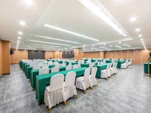 酒店设施完备,房间空间很大,里面的设施都很新,住着舒服,服务员态度很好,每天打扫干净。三楼的自助早餐样式多,午餐和晚餐菜式多,吃了几餐都不带重样