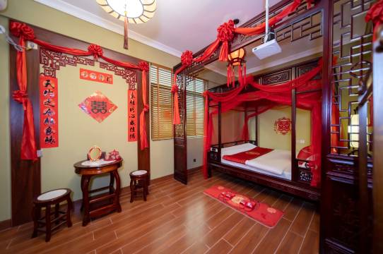 每个房间都有不同的主题,我在网上看到洞房花烛大床房这个主题立马就决定订了,到了发现很有氛围,确实没让我失望。
