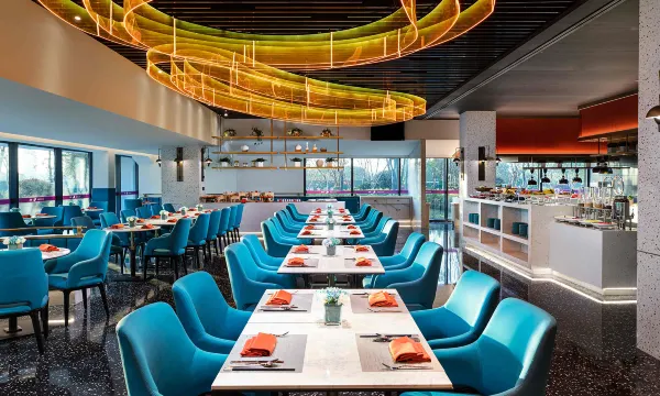 酒店是悦榕庄旗下最年轻的品牌,酒店位于衢州市鹿鸣半岛内,距离衢州火车站约7.2公里,距离衢州机场约8.7公里。时尚、炫酷、独特是它的关键词,跳跃的色彩运用及大胆的混搭设计,融合传统徽派记忆,对其进行新的诠释,为千禧代及畅享自由旅行者量身定制开放式社交空间,赋予其灵动鲜明的形象,打造更具个性和温度的酒店。
