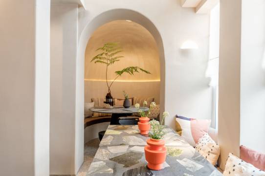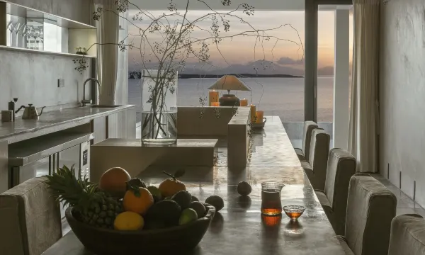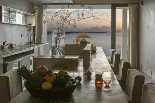 本店位于有着“深圳后花园”之称的大鹏半岛,坐落于悬崖之上,媲美于意大利风情小镇波西塔诺,将绝美的蓝白海景,大地色的岩石空间、墙壁纹理感,仿佛身临其境,处处都充满了神秘感。岩石花园、Lounge Bar、海边户外餐厅满足了对度假的美好想象。白天,蓝天白云群山和大海;下午,在日落余晖的照映下,品尝精美下午茶;傍晚,泡着浴缸看晚霞;晚上窝在海景房里,点亮一盏暖黄色的小灯,感受发自内心的宁静,消散所有的疲惫感。