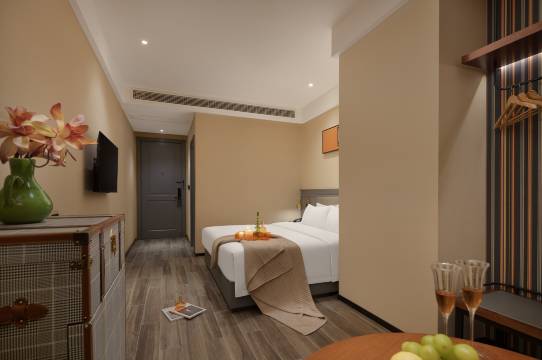 床垫软硬适中,被褥蓬松,一夜好眠无压力。卫浴干湿分离,热水稳定,洗漱用品齐全,细节处可见用心。免费Wi-Fi网速流畅,办公娱乐两不误。前台服务热情周到,入住和退房手续高效。