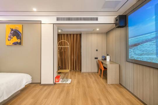 这是一家您值得收藏的宝藏酒店!老板任性,酒店设备只选大品牌!巨幕投影音响,观影效果非常好!体感游戏动感十足,人机互动,健美又好玩!太空舱音乐按摩,让您身心舒畅充满活力!机器人上门服务,科技感杠杠滴!洗衣机、烘干机干燥无忧,清爽舒服一整天!朝有早餐,夜有糖水,暖心四季!现磨咖啡、功夫茶具、毛笔字贴,解压音乐、无限阅读,益智游戏玩到嗨,大人小孩儿都喜欢!大型停车场出入方便,配有充电桩,24小时管家在线提供各种暖心包!seeking your free soul!来本酒店感受灵魂自由之旅!