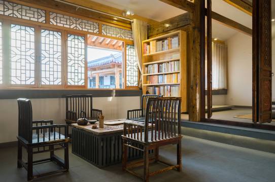 在寸土寸金的古镇核心区,老板竟然拿出了1500多平的占地,却只做了13间客房!整整三层都留给了书馆,藏书之丰富令人惊喜。旁边还有手工体验馆,可以亲手触摸和顺的在地文化。