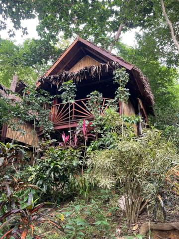 非常棒的酒店!丛林中的小木屋,有些能看到海景,有些则看不到,因为房子前面树木繁茂。餐厅前有一个很棒的小沙滩,配有舒适的懒人沙发。树荫充足。早餐可以俯瞰大海,距离海边仅10米。房间里有一张非常柔软的四柱床,并提供两套睡衣。淋浴间配有空调,这在酒店并不常见。是的,这些小木屋虽然不是全新的,但非常舒适。吊床是彩绘的,桌椅都是用树干手工制作的。重要提示:酒店占地面积很大;我们沿着台阶和小路走了7-10分钟才到达沙滩和餐厅。因此,这里不适合带小孩或有健康问题的人入住。晚上,蜥蜴会在屋顶和墙壁上爬行;它们叫声很大,走动时会发出沙沙声。虽然蜥蜴不在屋内,但它们会住在屋子的木板缝隙里和露台上——叫声很大,可能会吓到人。