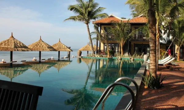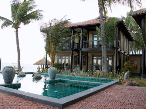 算是美奈的网红酒店了,春节价格还很便宜,所以很抢手。外部环境相当好,海边和园林各有一个泳池,拍照绝对出片。房间是那种复古的东南亚风,但的确有点旧了,对我来说问题不大,唯一就是浴室灯光实在昏暗,淋浴的水压和花洒也不太行。4岁以上儿童加价8w越南盾含早,早餐很不错,完全超出预期。出门吃喝很方便,隔壁就是热门海鲜店,热门按摩店也就走五分钟不到。