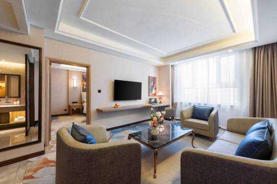 房间可以、卫生也可以,前台服务员还给我们升级了房型,很好的体验,停车场也很方便,主要是离高铁站很近,很方便。
