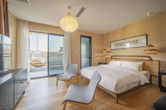 民宿环境安静优美,装修风格独特,有预定的艺术气息。管家服务热情周到非常贴心,提供了当地旅游攻略。房间舒适,床品干净柔软。公共区域有绿植陪伴,让人惬意舒适。晚上泡的温泉非常舒服,一整晚的睡眠质量杠杆的,值得再来👍