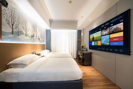环境超棒的一家酒店!位置很好。前台小姑娘服务态度超级好,笑容甜美,办理入住速度快。大厅装修精美,休息区布置得很温馨。房间床品干净卫生,房间里的设施一应俱全。周边美食多,出行方便,性价比超高!!而且是宠物友好酒店还不错