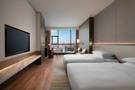 房间很新但没有异味,设施很新,马桶是智能的,自动冲水,可以洗屁屁,有浴缸,也有淋浴房,热水很热,水很大;但台盆设计的水龙头不好用;房间空调很暖,客房服务很到位,随叫随到,但要用神灯APP,对老年人不友好。自助早餐质量很好,选择很多,还有荠菜肉汤圆(菜团子),和老式糯米饭团,很受老人孩子的喜欢。
