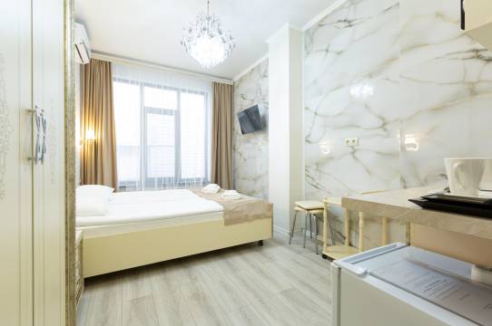 酒店前台及所有工作人员都非常友好和乐于助人。酒店位于索契市中心,周围有各种餐厅和咖啡馆,能满足不同口味的需求。离索契火车站也只有5分钟路程。