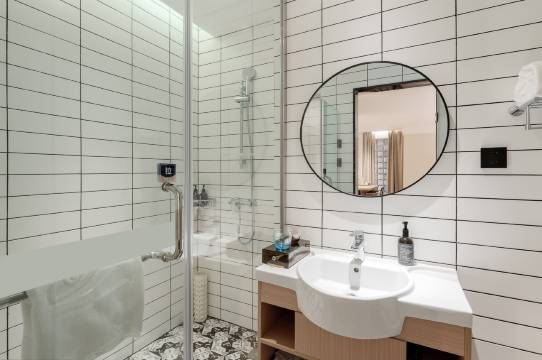 酒店比较新,整体环境很干净舒适,离体育场地铁站很近,外卖有机器人送上门很可爱。