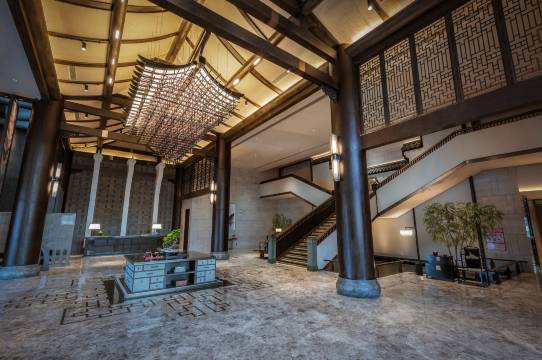 酒店位于文峰新区城市主轴,东至上犹东高速路口、印象客家,西连上犹西高速路口、天沐温泉景区,北可至南湖户外休闲基地、阳明湖、柏水寨、园村等景区。距离县政府、行政服务中心等单位大约3公里用时7分钟左右。酒店整体设计 从客家建筑构件、客家服饰纹饰、生活器具中提取设计语言,融入现代酒店建筑及室内空间中,重新赋予新的生命,来营造独具魅力的空间,秉承传统匠造,重塑现代轻奢雅居风华,白墙黑瓦,错落有致,林木掩映,清风徐来,尽显灵动、静谧与秀气!