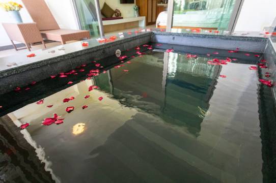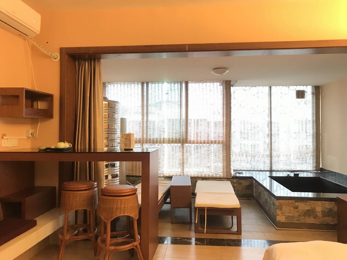 环境很不错,晚上泡温泉的同时还能看见外面的风景,整天卫生也很干净,采光很好,适合情侣出行。