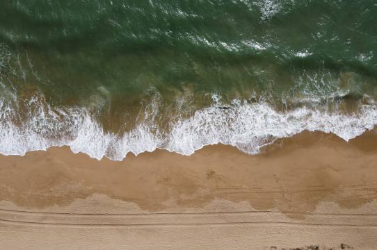 在别墅阳台可听海浪声,通过树缝可见海,出别墅门左走三分钟到沙滩