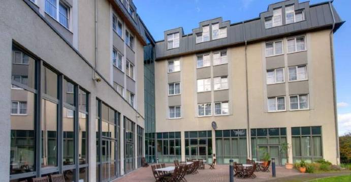 克雷费尔德南部一家不错的酒店,附近有加油站、高速公路以及一些大型工业区和公司。尽管如此,酒店位置仍然很安静,拥有自己的公园、小湖和免费停车场。