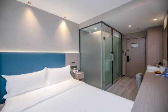 酒店位置非常好。离地铁口很近,楼下和周边商服很多。十分便利。房间整洁干净,价格实惠,热水和空调都很舒服。床品干净舒服。床边还有感应灯和氛围灯。老板热情,服务周到。性价比超高。下次出行还住这边。
