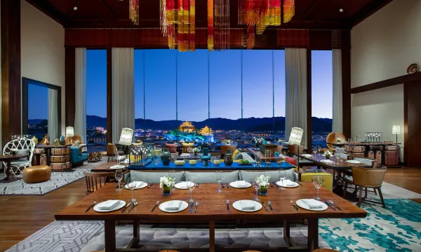 位于酒店一层的大堂吧及“盛筵”全日制餐厅呈献标志性香格里拉邻间风味和考究精致的无国界珍馐。全景落地窗通透明亮,将古城景致作为飨食幕景,邻桌宾客共享赏味时刻。