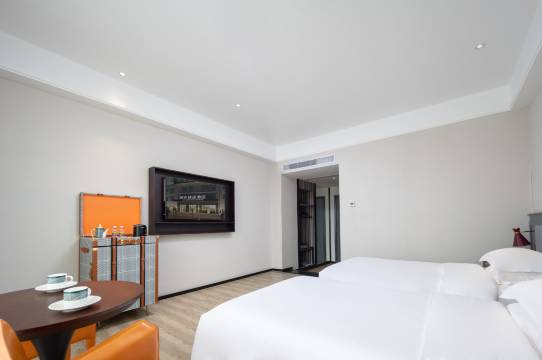 酒店位置很好找门口都是停车的地方,靠近河畔,环境也不错,房间还给我升级了,前台小姐姐人真好,房间卫生很好,很干净,很舒适,淡淡的清香味,楼下就是一家早茶店,顺便吃了一个早茶,感觉很好很棒。
