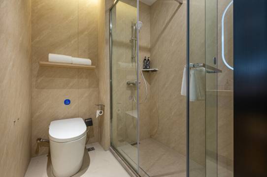 前台热情周到,办理入住迅速。从进门时的微笑相迎,到住宿期间细致关怀让我有家的感觉,超棒体验。房间床垫柔软舒适,卫浴干净整洁,电视、空调等一应俱全,住着非常舒心。酒店环境超棒,早餐丰富,有免费停车场,机器人送物[强]下次还来