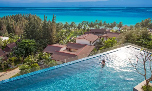 为了能让您尽情的享受假期,不要在为用早餐而扰您的度假时光,酒店特别为您准备了早午餐。酒店还为宾客提供丰富多彩的娱乐设施,包括先进的有氧运动设备和健身器材完善的健身中心,慢跑在椰林沙滩中体验约5.3公里的浪漫。这里阳光灿烂,海水湛蓝,椰林婆娑,民风淳朴,景区拥有83°真温泉,让您同时拥有滨海、温泉的双重享受。