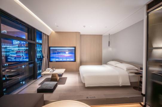 强烈推荐的一家酒店!1交通:地铁口出来100米,出行特别方便。2环境:环境非常好,顶层是前台💁🏻♀️,打卡拍照📸很适合。3景观:正对钱塘江,在床上就能看到江景。4服务:前台的小姐姐服务态度特别好,还给免费升级房型。总的来说,性价比很高,推荐哦
