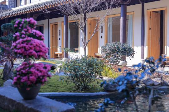 我们一共订了 6 个房间,体验了他家所有房型,每个房型都是超赞的,孩子特别钟爱他家的榻榻米,院子里的自然景观也超赞,老板还提供了多套汉服供我们拍照[强][强][强]酒店出来就是步行街,周边景点环绕