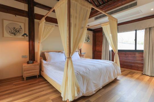 甬浩轩·福华客栈集民宿,私房菜于一体。有各类主题房间,每间房都有特别的寓意及典故,装修典雅,空间大,床型多变,可以满足不同类型客人的需求。 每个房间都配备了中央空调、地暖,部分房间还自带小花园和汗蒸房。以状元阁、慈孝阁、红妆阁命名的三间套房,还原了中国十里红妆与慈孝文化,给与客户的不仅仅是住宿,更是一场文化之旅,只为给每一位入住者提供舒适体验。每周不定期开展书画创作、中式花道、香道……等相关课程,可承接各类中小型团建活动。