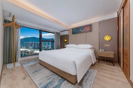 酒店坐落于珠海拱北粤海中路森宇富通商务大厦,酒店除精致商务房外,其他房型均为lof风格,空间大,动静分离。客房位于大厦13至21层,可俯瞰珠澳城市美景,山景、海景、河景;周边配套完善,有大型超市、酒店、电影院、银行等生活配套一应俱全。酒店距离珠海国际会展中心约15分钟车程,距离珠海长隆海洋王国约30分钟车程,交通便利。