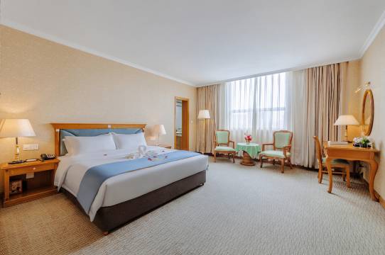 酒店位置较好,江边配套齐全。套房这个房型房间宽敞。