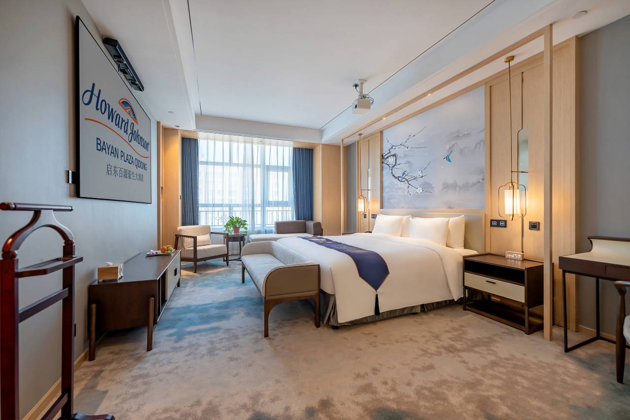 酒店设有非遗文化元素客房,内饰典雅精美,设施设备齐全,非遗元素点缀每个细节,结合现代人的审美需求来打造富有传统韵味的非遗元素客房。