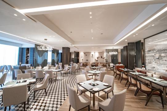 酒店很高档卫生,订的房间可以看到江景阳光明媚,酒店服务很好,本来房间只包含两份早餐,前台登记入住时,工作人员看着带有小孩,就直接免费送了一张早餐劵给小孩,前台人员服务太贴心了,早餐也非常丰盛好吃,这次订的房间全家都非常满意!