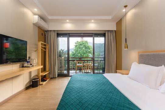 超过预期,五一期间价格也不贵。订房时看到评分不高,还担心暴雷,进入房间后同行三个家庭都非常满意,床干净舒适,躺床上可以看到青山,露台加分,站在露台上可以欣赏河景。