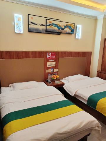 一、舒适的住宿环境 酒店共五层,一层会客厅您可与朋友畅谈!三、四、五、层以客房为主有客房39间,房型有:普通双人房、豪华双人房、豪华三人间、商务大床房,每间客房内设有空调、免费WIFi、电话、休闲座椅、免费按摩椅(三层、四层)免费游戏机(五层)超大数字化液晶电视您可随时观看直播等其他自选节目,除此之外每间客房还配有独立卫生间、浴室等等着!①商务大床房 每间商务大床房内配有按摩椅(三层、四层),不仅给您带来舒适轻松的休闲环境,回忆一下童年时光中的97拳皇!忙碌了一天的工作,躺在按摩椅看看书、听听音乐、看看电视、放松一下,缓解一天的疲劳 ! 二、宾客尊享 您在这里可享受免费洗衣、免费无线WiFi。三、服务至上 用最真诚的微笑,换取顾客对我们服务的满意。并以“宾客至上、服务”为经营宗旨,真诚邀请您光临。四、应有尽有的商业街 酒店周围有停车场、大型超市、KTV、电影院、各种特色小吃等等,应有尽有满足每个顾客的需求。五、酒店地址 地址:宁夏宁东能源化工基地财富家园东门