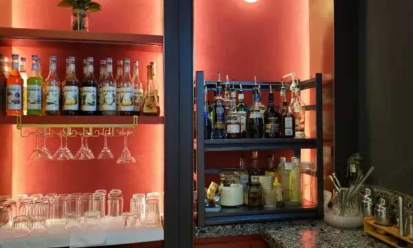 前台入住欢迎花茶及小饼干和美式咖啡可以任意自取,晚上8点到12点每个房间都有2杯鸡尾酒,前台直接送到房间。
