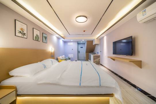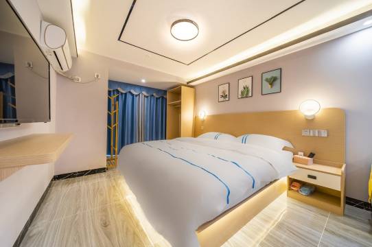 干净卫生,房间设施设备齐全,住着挺舒适的,就是被子稍微有点厚,盖着稍微沉点,其他的挺好的,周边环境不错