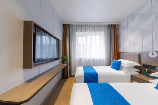 很不错的一家酒店,性价比超高。按照导航非常简单的就找到了,大厅装修的简单时尚。最喜欢的是闲暇之余可以安静看书的书吧。而酒店工作人员的表现更是无可挑剔,每一位都热情得如同春日暖阳。从前台办理入住时,工作人员脸上洋溢着真诚的笑容,不仅迅速高效地帮我完成手续,还详细地为我介绍酒店周边的游玩攻略和特色美食,专业程度令人赞叹。在之后的入住过程中,无论是遇到什么问题,她们总是第一时间响应,用最贴心的服务帮我解决。酒店房间虽然不大,但是设施也一应俱全,智能的设施更是加增加了入住体验,床品干净整洁且十分舒适。房间布置温馨,每一处细节都彰显着酒店的用心。这次的入住感觉特舒服,舒心,让我有一种宾至如归的感觉。真心推荐给每一位出行的朋友!