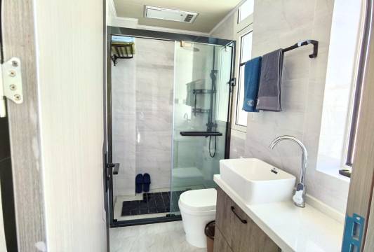 适合家庭出行,有四个房间,五个床,四个卫生间,一个院子,一个厨房