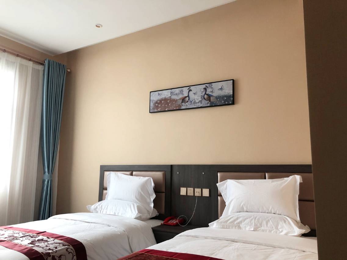 房间干净卫生整洁,大床房空间大,隔着窗户可以看到远处的山,景色很美。酒店位置离九成宫步行800米就到了,交通,周围有小吃购物广场等。酒店的服务人员很热心,早餐不错。下次还会去入住